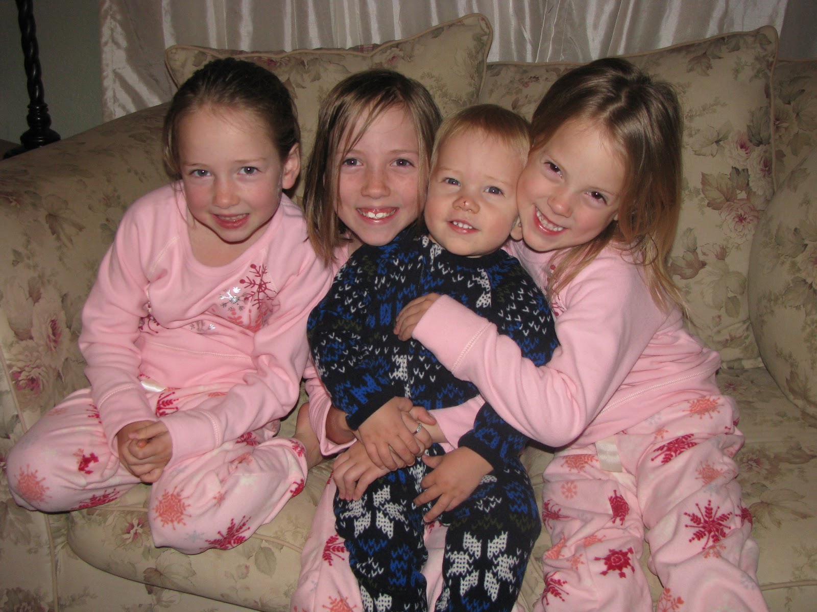 Snowflake pajamas!!!! You can see how excited they were! And then off to bed they went to wait for Christmas morning.....